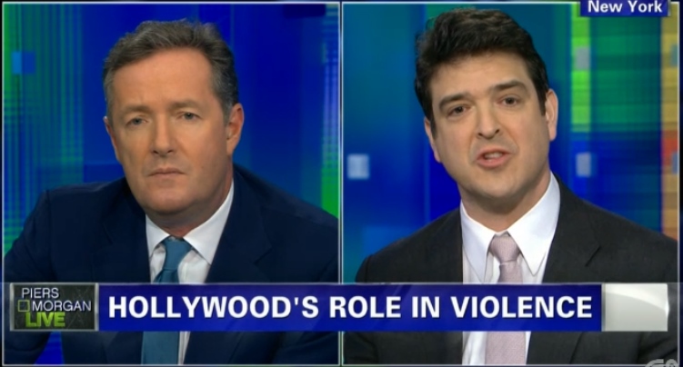 Dr. Welner's interview followed Piers Morgan's discussion with Los Angeles based editor of Vanity Fair, Krista Smith in which Ms. Smith represented the perspective of Hollywood: "Just because I watch a Quentin Tarantino movie and I love it doesn't mean I'm going to think I'm Uma Thurman and I'm going to go out and, you know, slice people up with my machete. I think that there's a big disconnect," questioning exactly what research has linked entertainment violence with the perpetrators of spectacle mass killing. She concluded by noting, "I think we have a bigger problem in the future with all these, you know, young adults, men and women coming back from Iraq and Afghanistan and they've been doing two or three tours of duty and they've actually really seen horrific things in real life and had done them, had witnessed them."